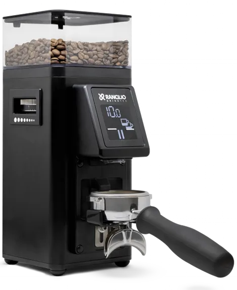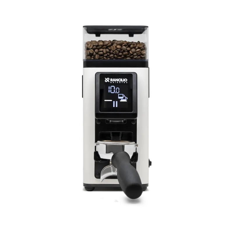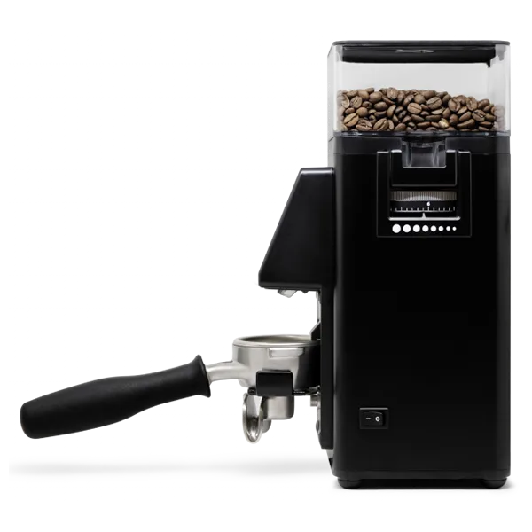 The practical, height-adjustable Hands-Free fork allows you to attach the portafilter and start grinding with a single touch.